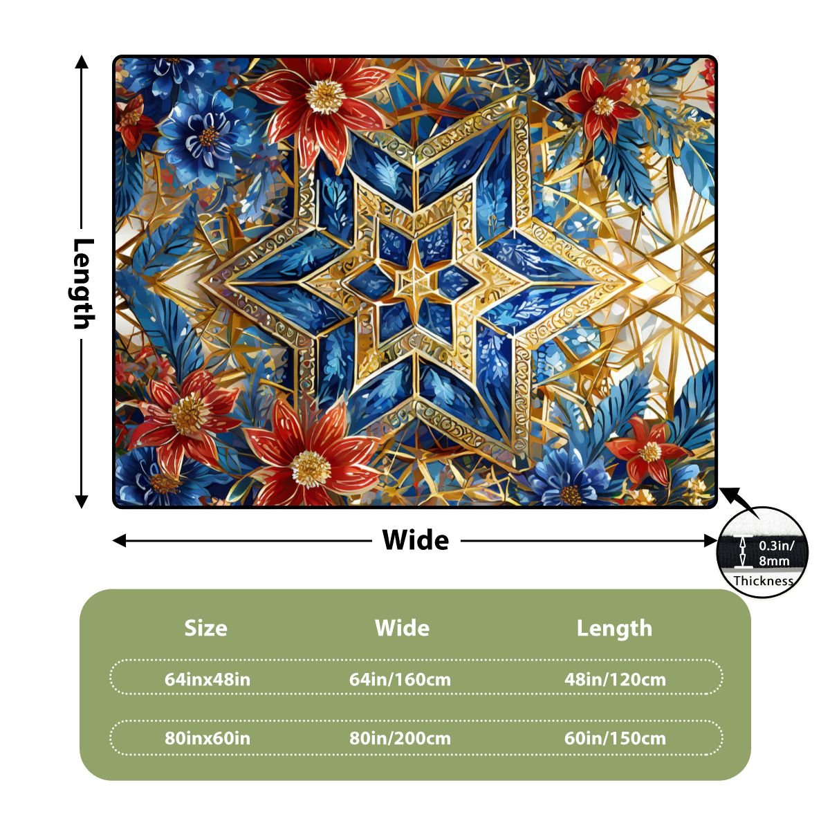- Product Size: 64″x48″, 80″x60″. The size of this product can be customized. If the size you need is not in the list, please contact us.