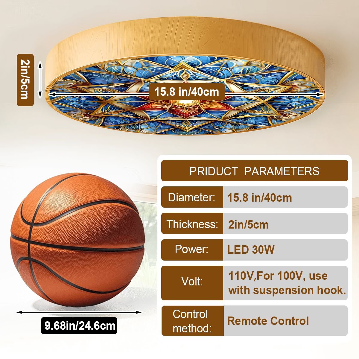 - Package Includes: 1 × Light Body, 1 × PE Diffusing Panel, 1 × Remote Control with Manual, 1 × Installation Manual, 3 × Expansion Screws, 1 × Suspension Hook (only for 100V version).