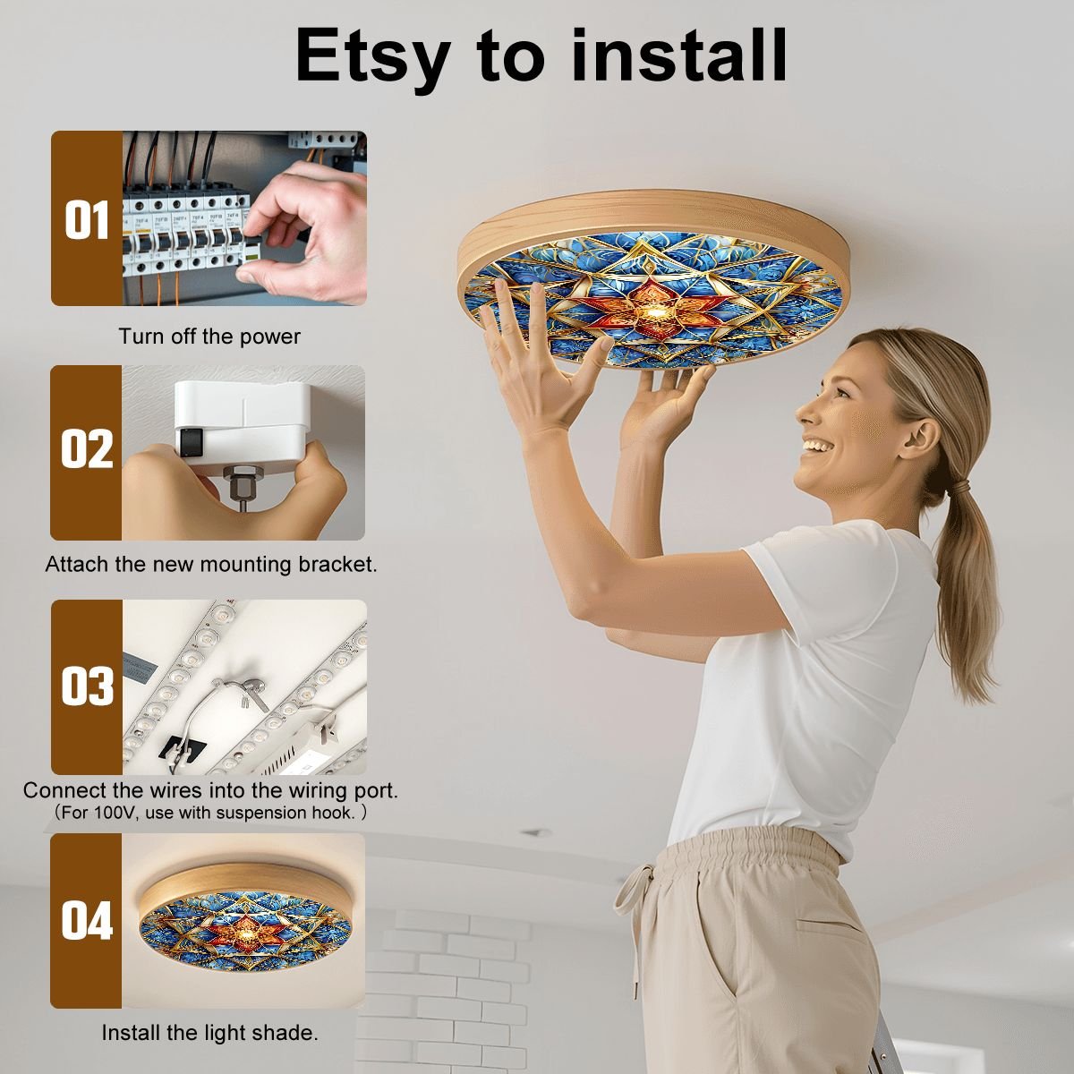 - Special Note: The light operates on 110V voltage and requires wiring for installation. If the voltage is 100V, please install the suspension hook for use.